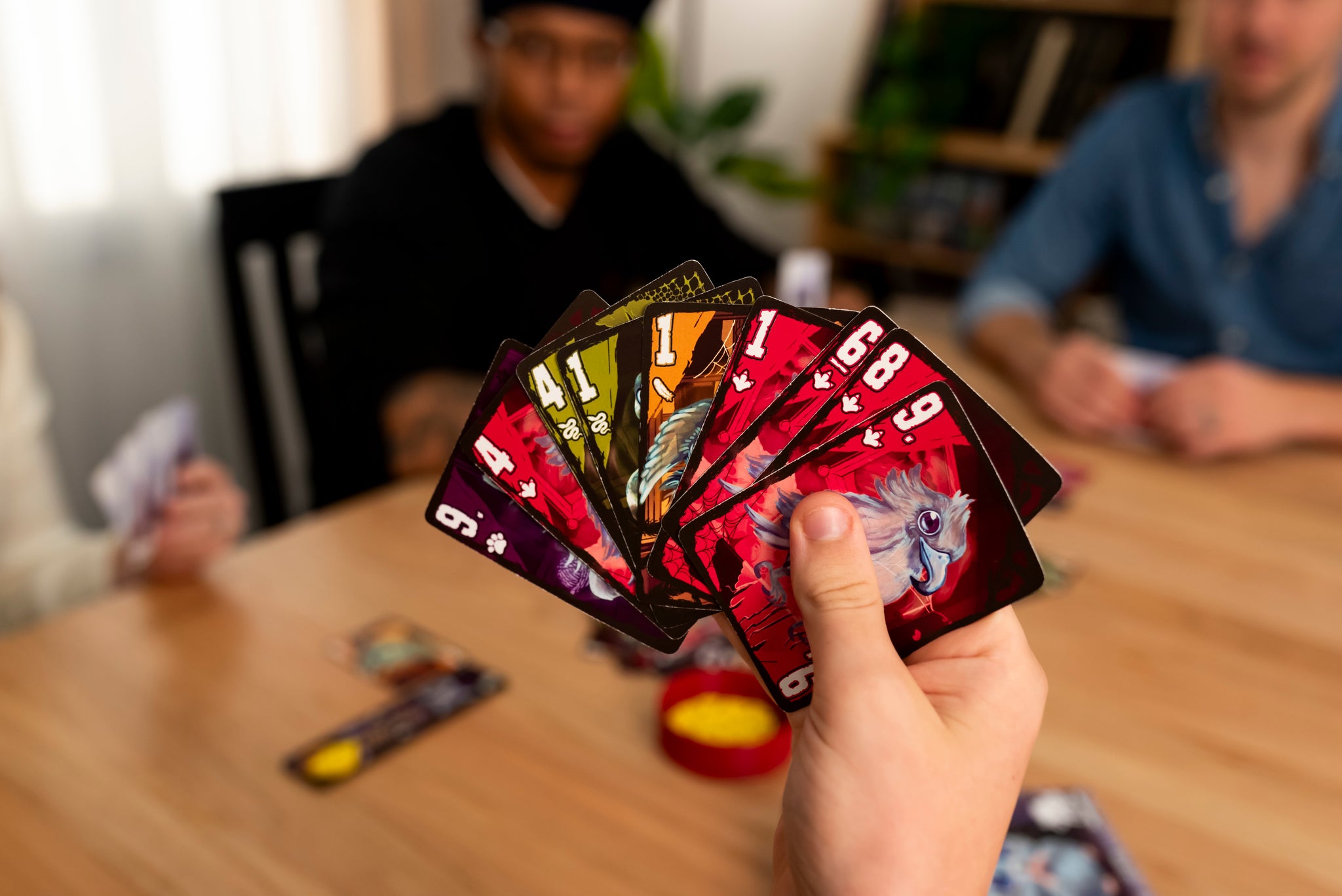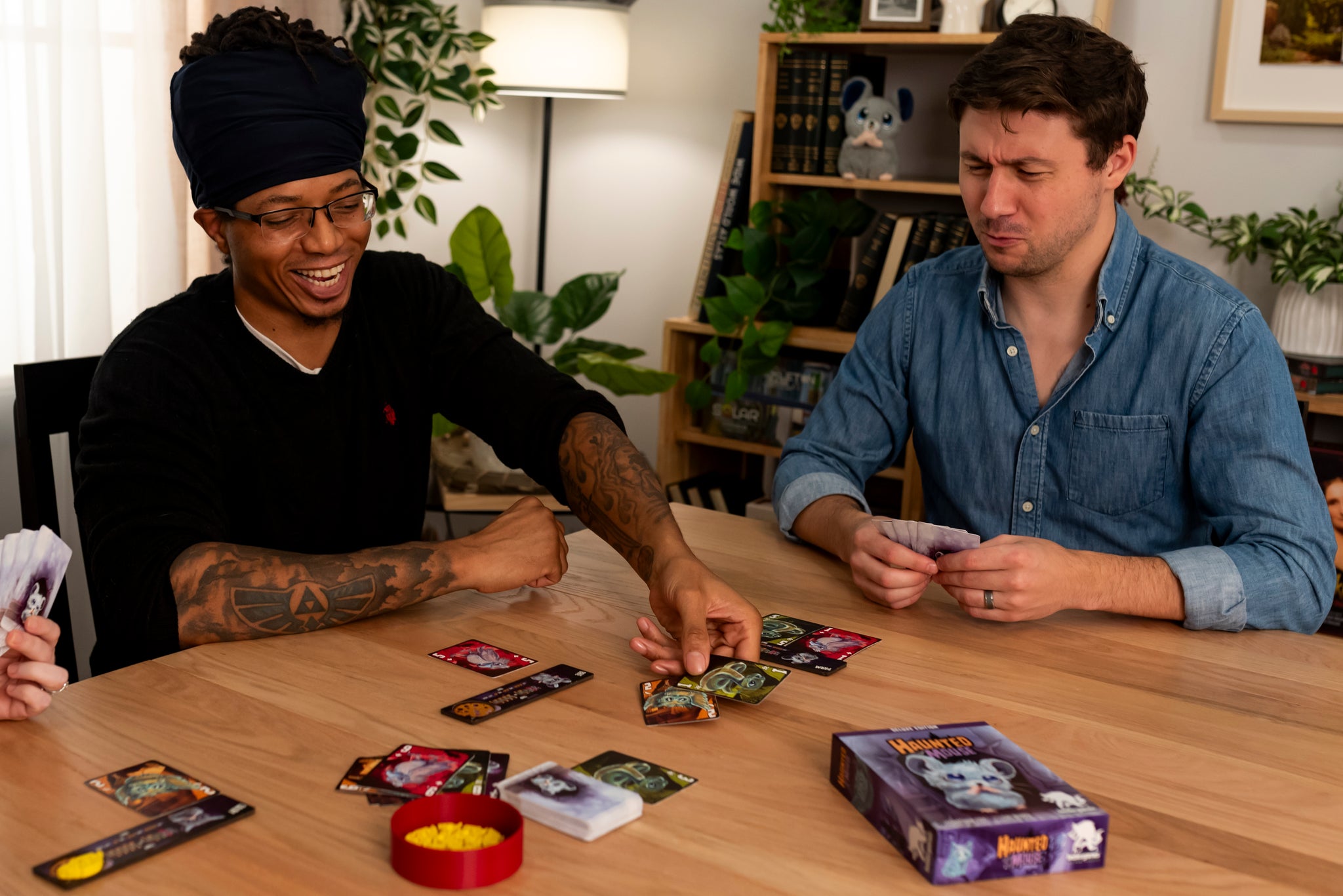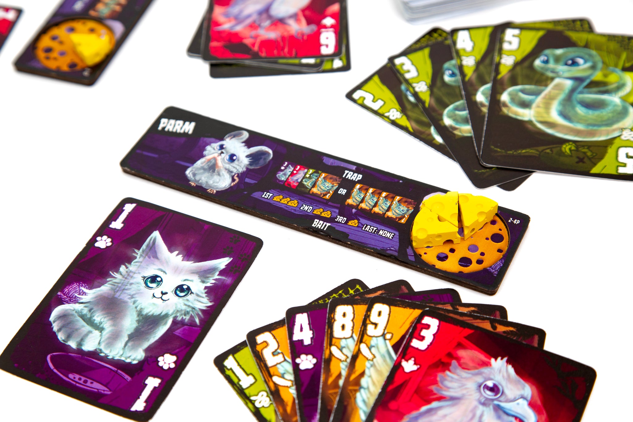 Haunted Mouseis a ladder climbing/shedding game where mice not only shed their own fears (cards), but can use the fears of others! After all, why work hard shedding your own fears when your opponents can do it for you? The earlier you get rid of all your fears, the more cheese you get! Be the first mouse to complete their cheese wheel wins the game and never goes hungry again!